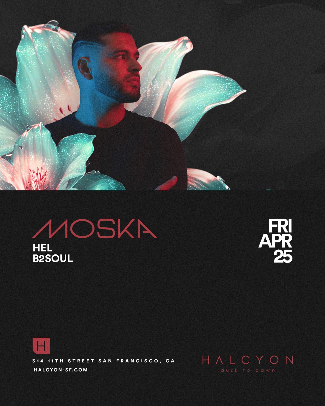 You can catch his headline show on 4/25/25 at HALCYON SF alongside Colombian DJ and producer HEL, who also happens to be one of MOSKA’s OG fans when he discovered his story back home over a decade ago.